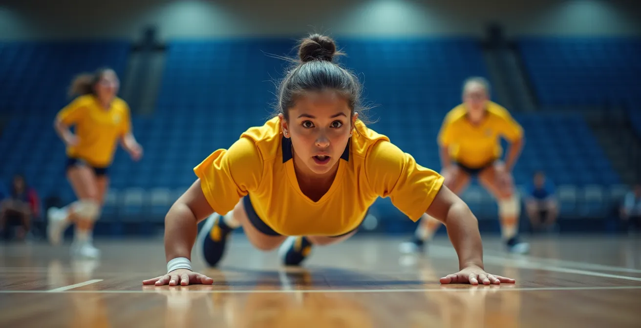 L’anticipation n’est pas un don, c’est une science. Un bon libéro ne réagit pas à la frappe, il se positionne là où le ballon va atterrir avant même que l’attaquant n’ait touché la balle. Cette capacité de lecture repose sur l’analyse rapide d’un « triangle d’informations » : les épaules du passeur, la course d’élan de l’attaquant et le positionnement de notre propre bloc. Avant chaque service adverse, mon cerveau traite ces trois variables pour dessiner une « carte des probabilités » des zones d’impact. C’est ce que j’appelle la géométrie du jeu.